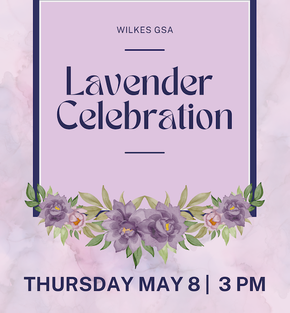 The Wilkes GSA would like to host a lavender celebration to recognize our LGBTQ+ students graduating this year. You do not have to be an active member of the GSA to participate. I just need to know that you are interested. The celebration will take place on May 8th. Participants will receive a certificate and lavender cord. If you would like to participate, please complete this 2 question form or email helen.davis@wilkes.edu with your name as you would like it to appear on your certificate and in the ceremony as well as your majors/minors/degrees. The ceremony is open to undergraduate and graduate students. Please respond by Friday, May 2nd.