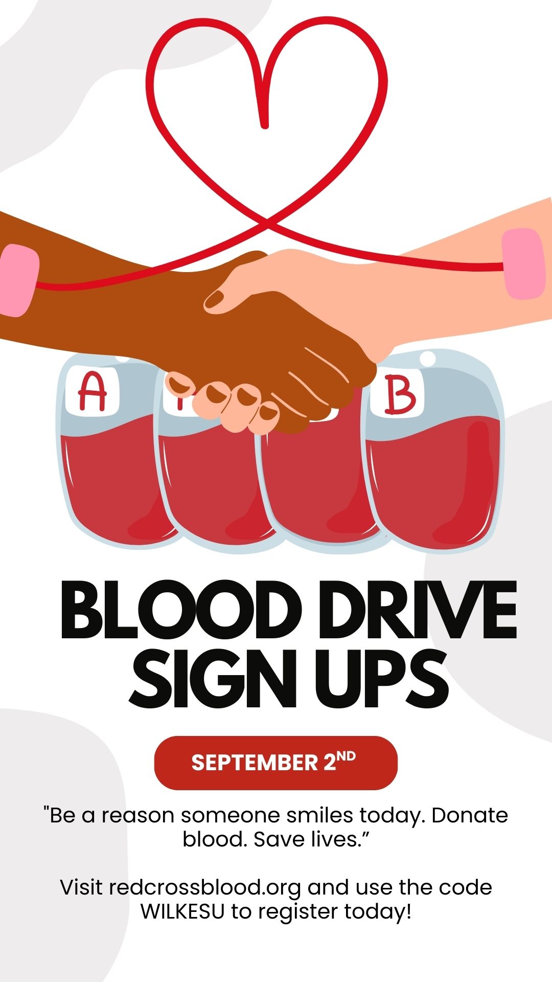 This is the final call for our blood drive sign ups! First drive of the year is taking place on Tuesday, September 2nd. A few spaces are still available for you to donate and make a difference in someone’s life. Use this link or visit redcrossblood.org, code WILKESU.