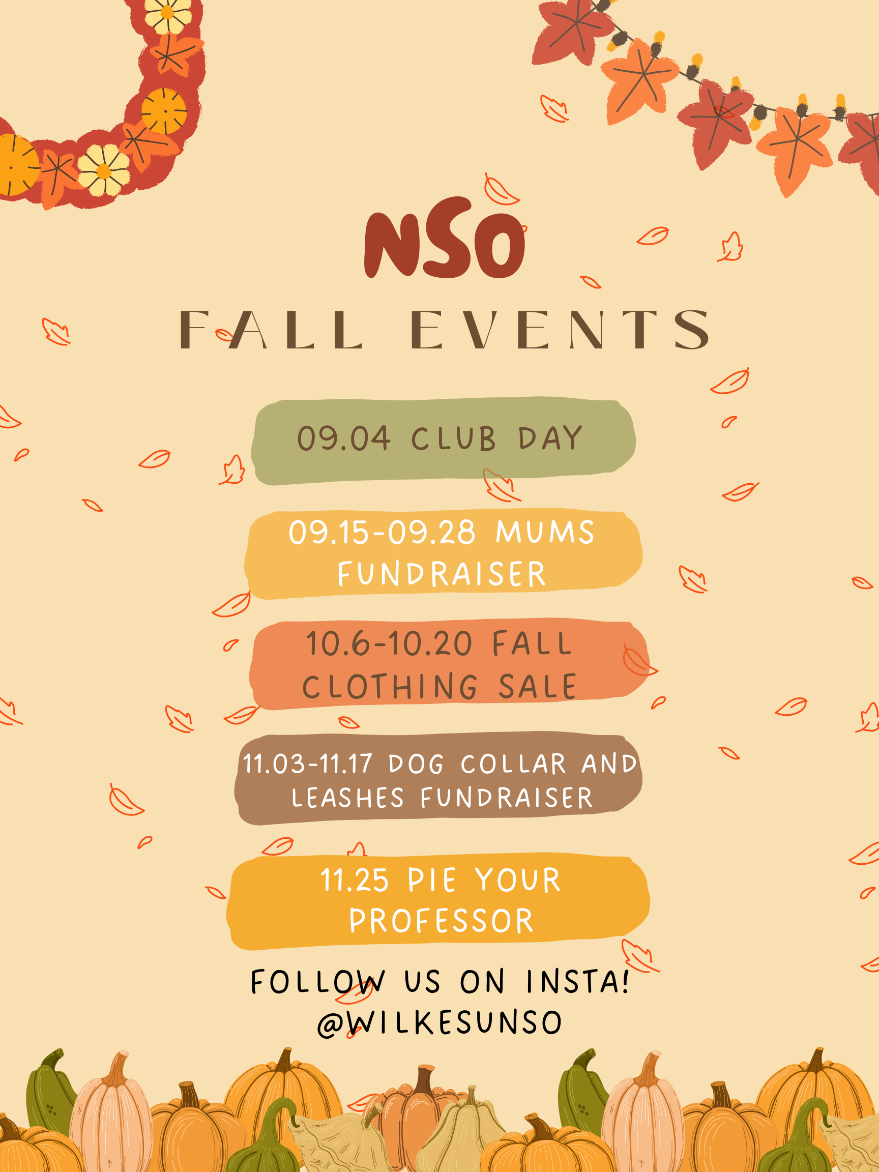NSO Fall Events!September 9, 2025Faculty and Staff, StudentsHi everyone! Be on the look out for the Nursing Student Organization’s upcoming events for this fall semester!