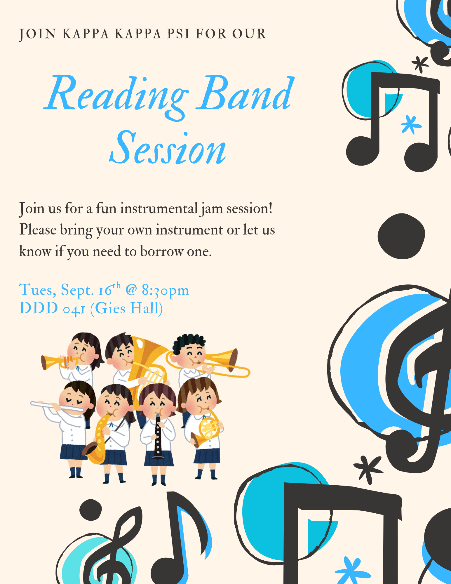 Join us tonight, 9/16 at 8:30pm in DDD 041 (Geis Hall) for a fun instrumental jam session!