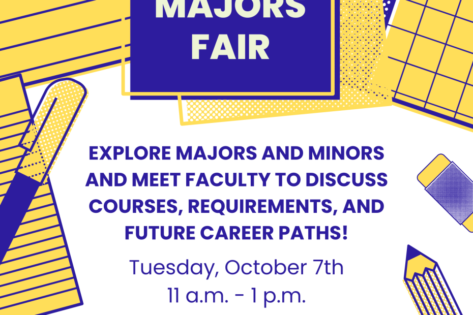 Still deciding on a major or thinking about making a change? Come to the Majors Fair on Tuesday, October 7th from 11:00 AM to 1:00 PM in JPAC! Meet faculty from every department, ask questions, and discover new opportunities. Whether you’re undecided, thinking about adding a minor, or just curious, this is your chance to connect and explore all your academic possibilities!
