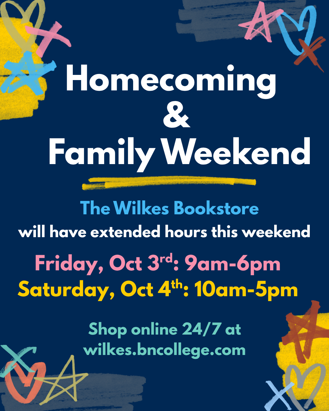 The Wilkes Bookstore will have extended hours for Homecoming & Family Weekend!