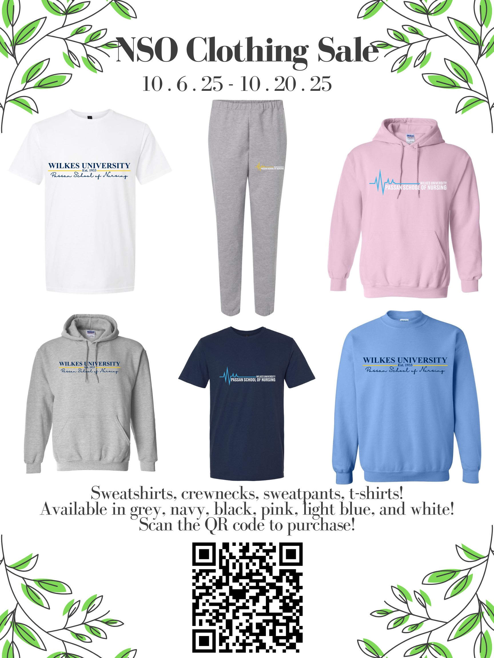 Hi everyone! NSO is holding their clothing sale from 10/6 – 10/20! We’re selling hoodies, crewnecks, sweatpants, and t-shirts! Copy the link below to get to our website! https://axelradshop.com/wilkes_nursing_2025/shop/home