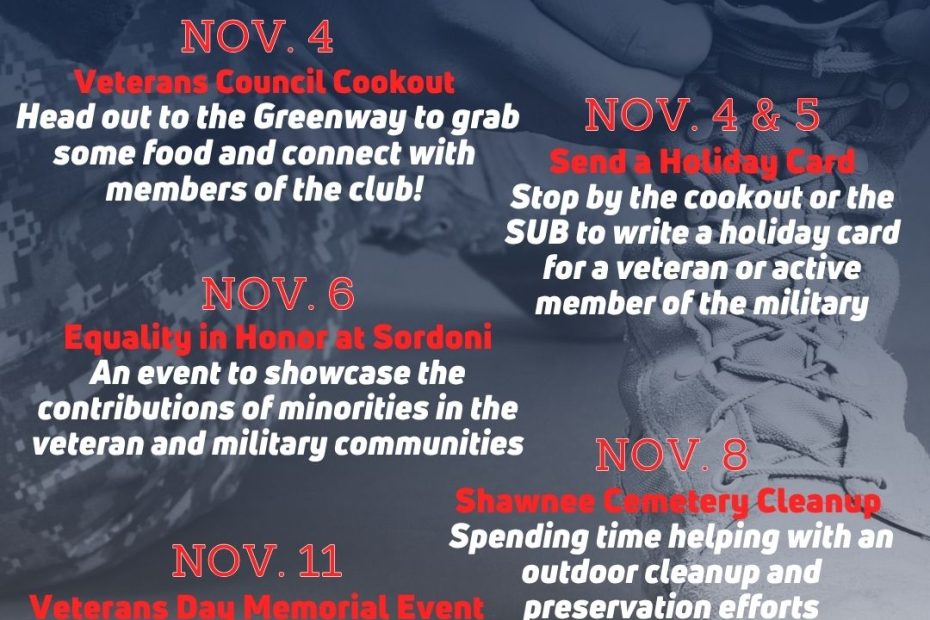 A variety of events will be taking place in early November to honor and remember those who have served. Join one of the many activities surrounding Veterans Day and make plans to participate!