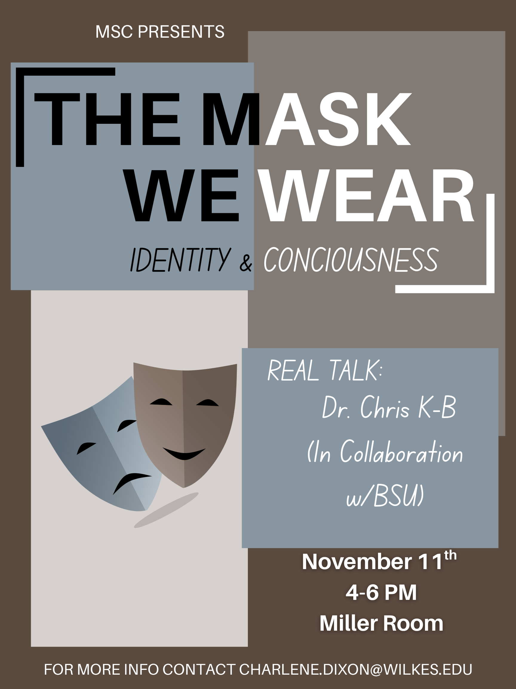 Join the Multicultural Student Coalition (MSC) and the Black Student Union (BSU) for “The Mask We Wear: Identity & Double Consciousness” — an interactive discussion led by Africana Studies Minor Director, Dr. Chris Kovats-Bernat.