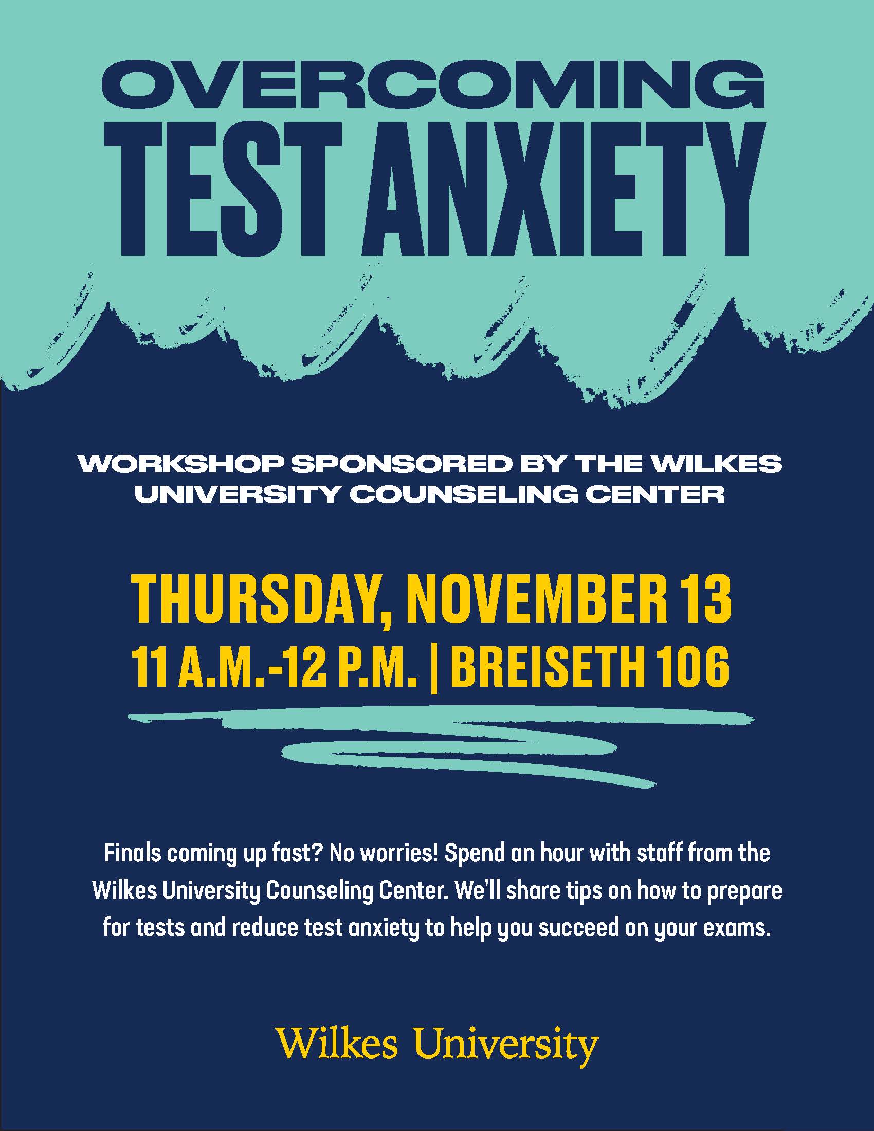 Exams can be stressful — but you don’t have to face that stress alone! Wilkes University Counseling Center is hosting a workshop on Overcoming Test Anxiety to help you learn practical ways to manage nerves, boost confidence, and perform your best when it counts.