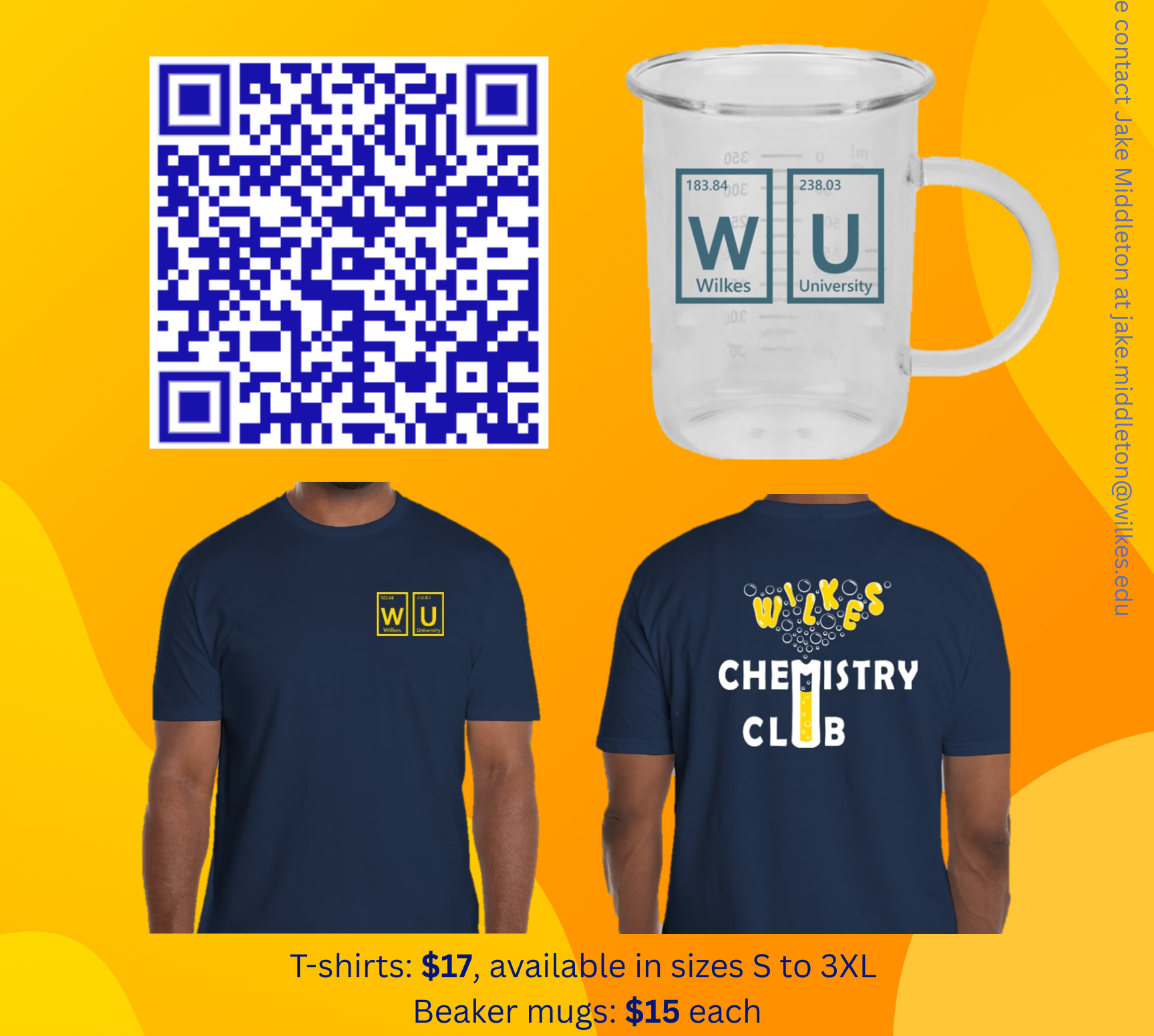 The Chemistry club is selling T-shirts for $17 and glass beaker mugs for $15! The proceeds will support the trip to the Spring 2026 ACS Conference. Go to wilkes.edu/chemistryclubmugs to place your order!