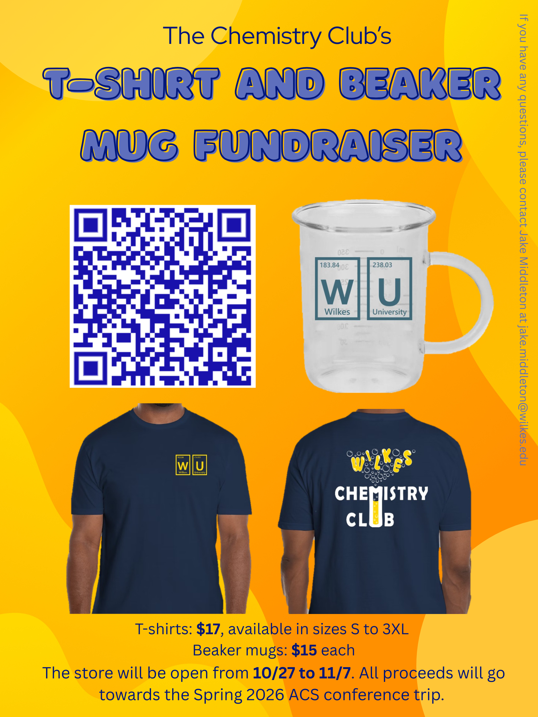 This is the last day for the Chemistry club’s T-shirts and mugs sale! We are selling T-shirts for $17 and glass beaker mugs for $15! The proceeds will support the trip to the Spring 2026 ACS Conference. Go to wilkes.edu/chemistryclubmugs to place your order!