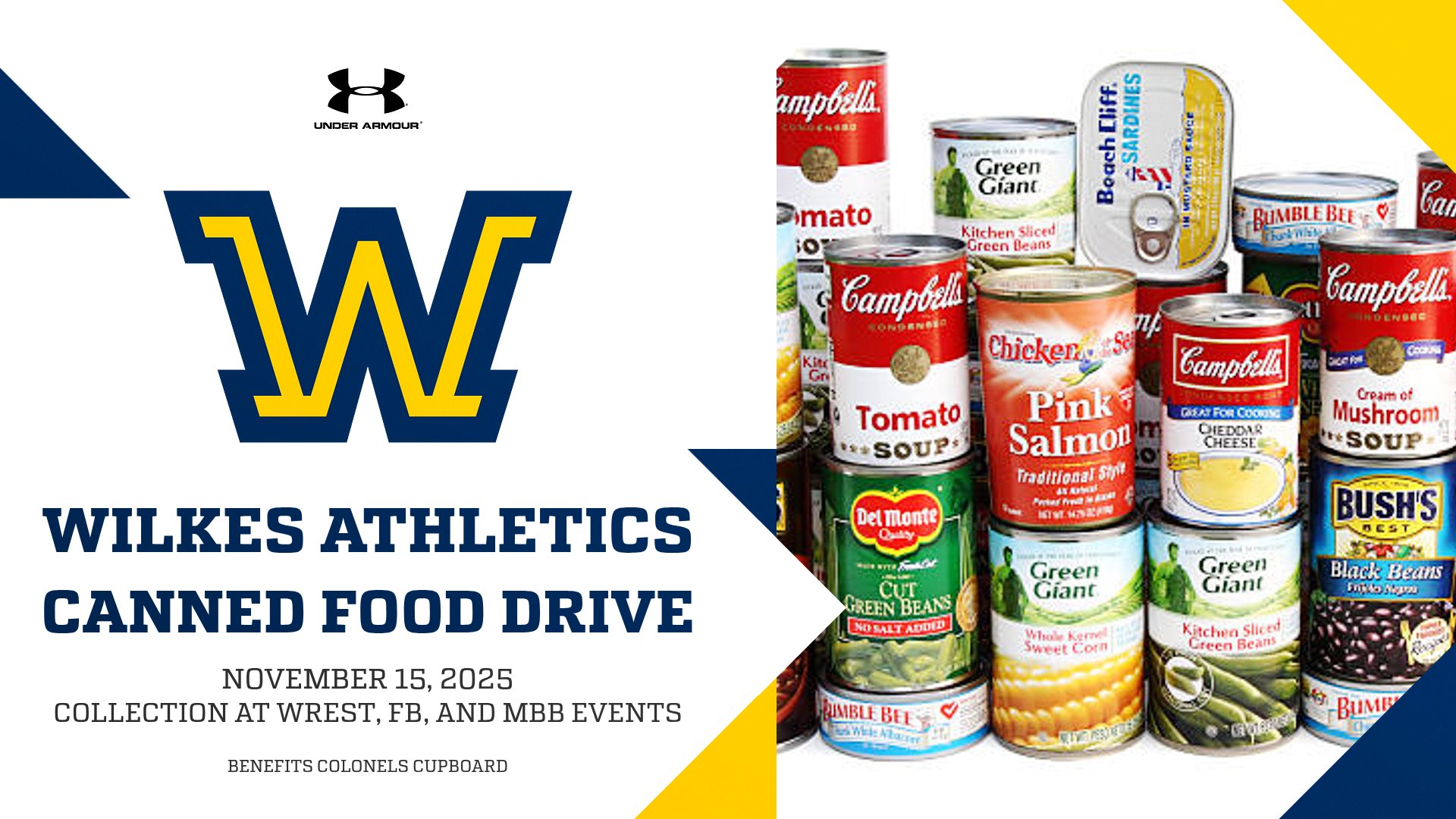 Wilkes S.A.A.C. is collecting nonperishable food items on Nov. 15th @ the following events.