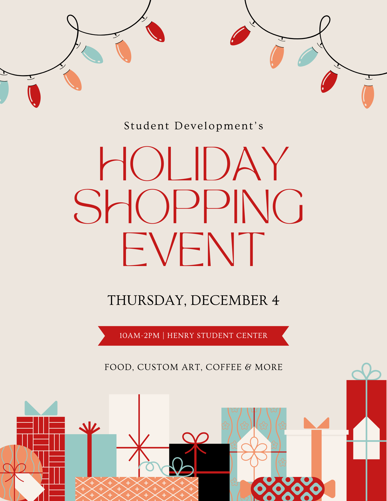Save the date! Shop local, support your community, and get in the holiday spirit! 🎁💙 Join your fellow Colonels for a cozy day of holiday shopping on Thursday, December 4 for treats and cheer — right here on campus in the Student Center! ✨The event will run from 10AM-2PM on both the first and second floors of the SUB. Questions? Let us know by emailing studentdev@wilkes.edu.