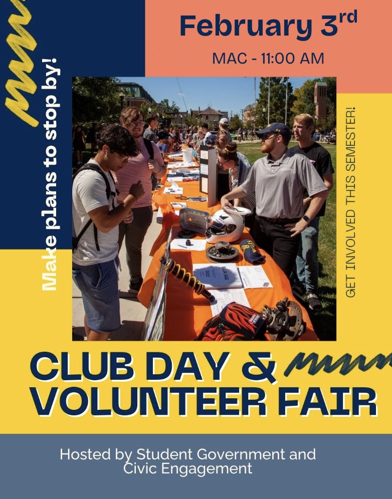 POSTPONED Club Day Spring ’26January 26, 2026January 26, 2026Faculty and Staff, StudentsSpring Club Day & Volunteer Fair has been postponed to next Tuesday, February 3rd at 11 AM in the MAC!