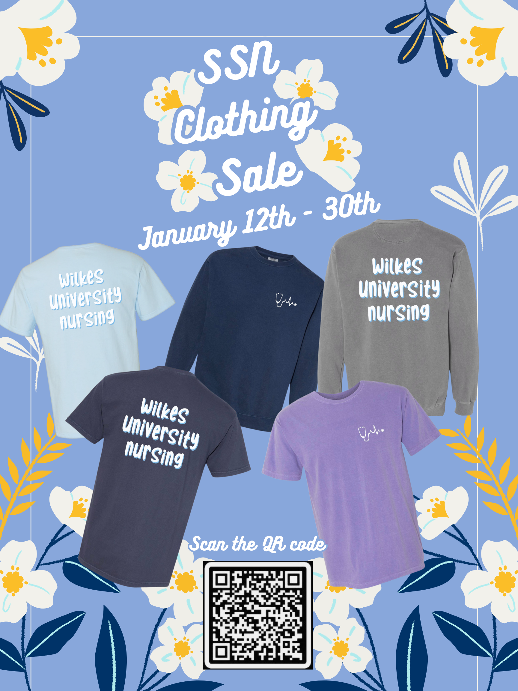 The Student Nurses Association (SSN) is excited to share that our SSN Clothing Sale is happening now and will run until January 30th!