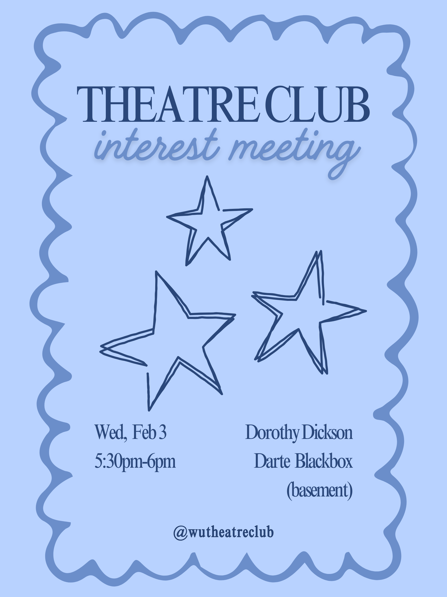Interest meeting for the newly established Theatre Club to talk about semester events and future plans! (come with ideas!)