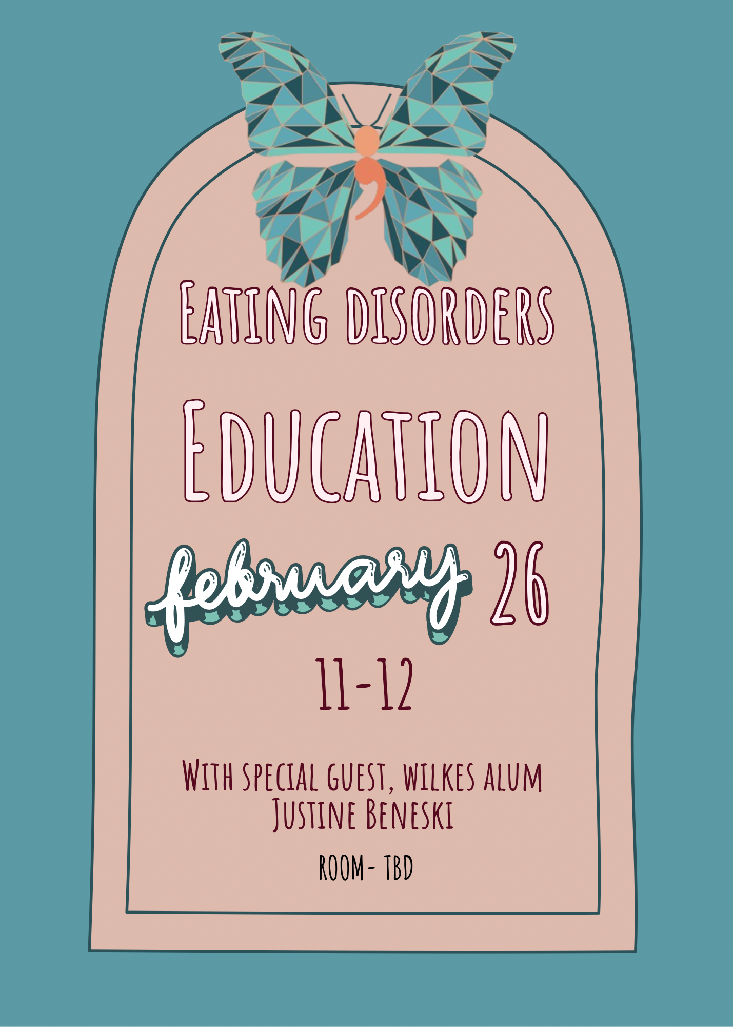 Please join the Morgan’s Message club at our eating disorders education event hosted by Wilkes alum Justine Beneski on February 26th 11-12 in room TBD, during Eating Disorders Awareness Week! The event is open to anyone. Please contact Katie Clarke with any questions at kathryn.clarke@wilkes.edu