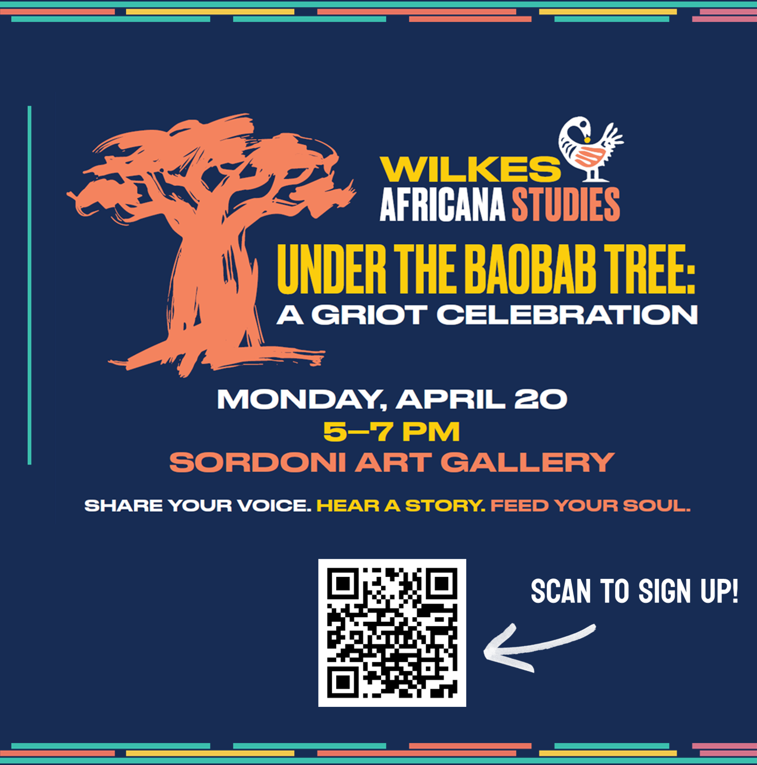 Join us for an evening of great food and community as we honor this tradition at Wilkes University. Share your poetry, tell a tale, perform a song or hymn, read a folktale, deliver a spoken word piece, share a family story or life lesson, do a step routine, try your hand at freestyle verse, or simply come, eat, and listen. Performances should be no more than 4 minutes each.