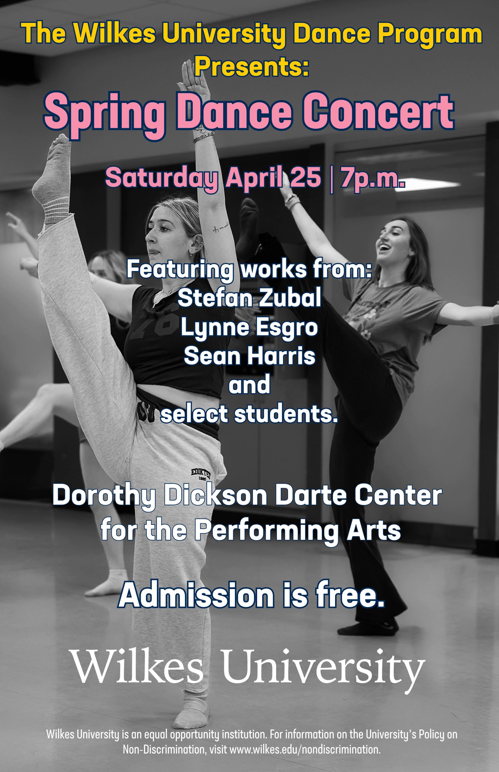 Join us on April 25 at 7:00 PM for the Spring Dance Concert, an engaging evening that showcases a dynamic blend of classical ballet, jazz, tap, musical theatre, and contemporary dance. The program features works rooted in tradition, including selections from Swan Lake and the jazz-driven Dancin’ Man, highlighting the iconic choreography of Bob Fosse, alongside vibrant pieces such as Born This Way and Doves Cry. A highlight of the concert is the work of student choreographers, including Nothing Seems to Change by Lexi Wesnak, Closure by Charley Cain, and The Cycle by Maddie Meier. All works in the concert are developed in Spring semester dance courses, reflecting a process-driven approach that brings choreography from the studio to the stage.